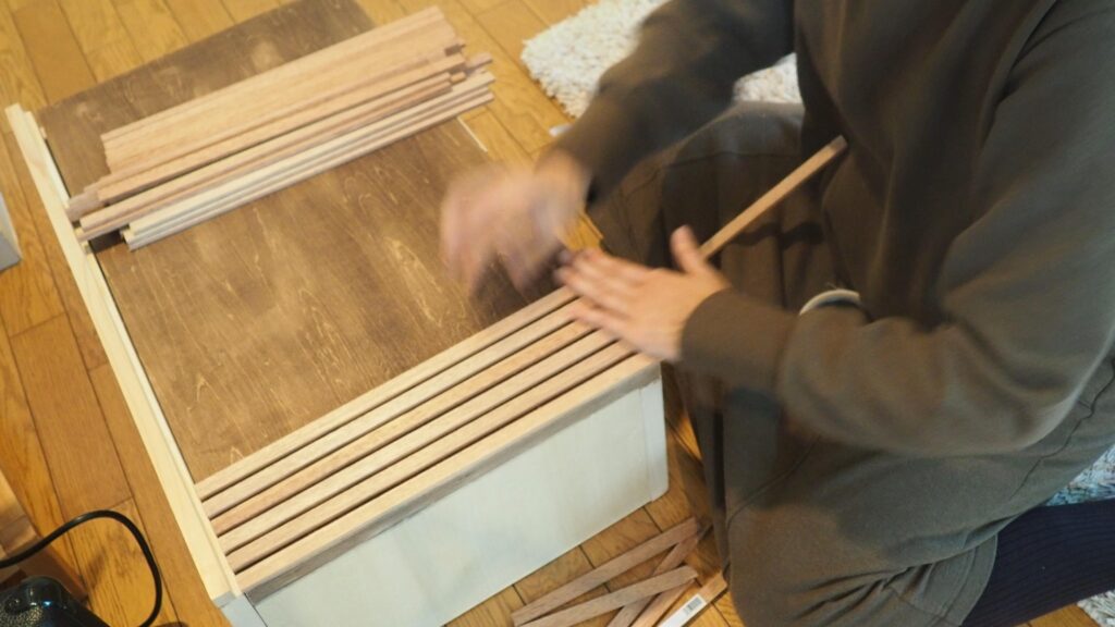 上の板を固定して、四角い箱を作る