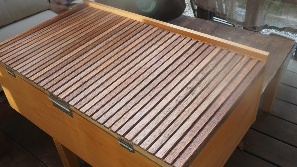 このあと、扉部分に貼ったラワン材の色味が気に入らなくて、ニスの上からオイルを塗ってみました。ニスを塗る前にアマニ油を塗った方が良かったかも。