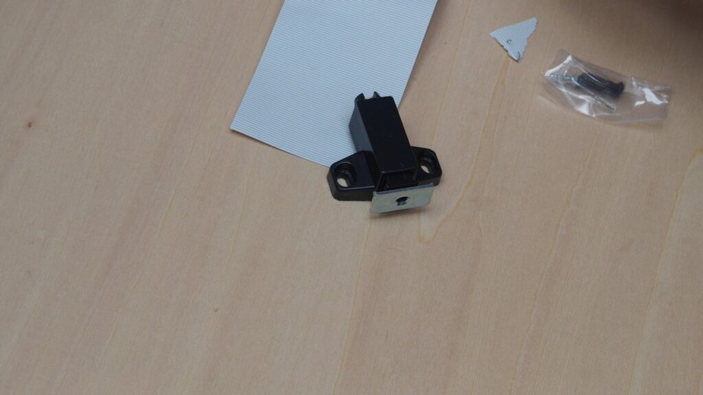 扉の開け閉めにはプッシュラッチを使います。これを使うことによって、取っ手が不要になり、見た目がスッキリします。